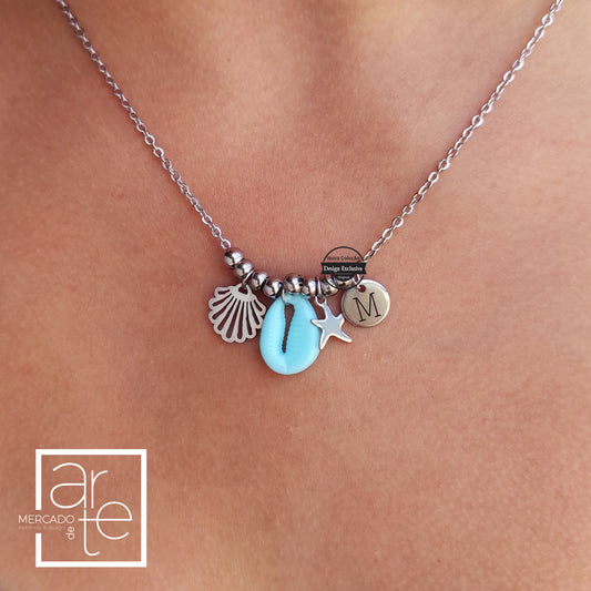 Fio duplo com pedra natural ágata cornalina "iniciais"