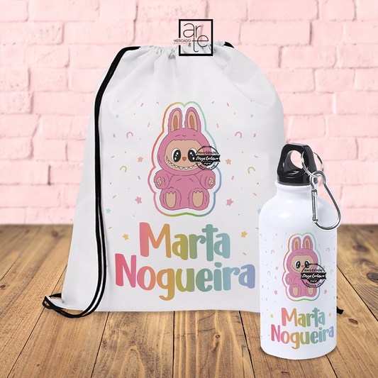 Saco e/ou garrafa lápis laço "Aprender contigo..."
