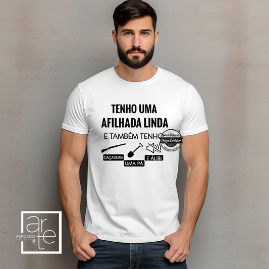 T-shirt "Tenho uma Afilhada linda e também tenho: caçadeira, uma pá e álibi"