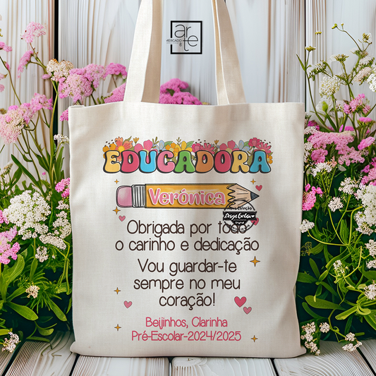 Saco e/ou garrafa lápis laço "Aprender contigo..."