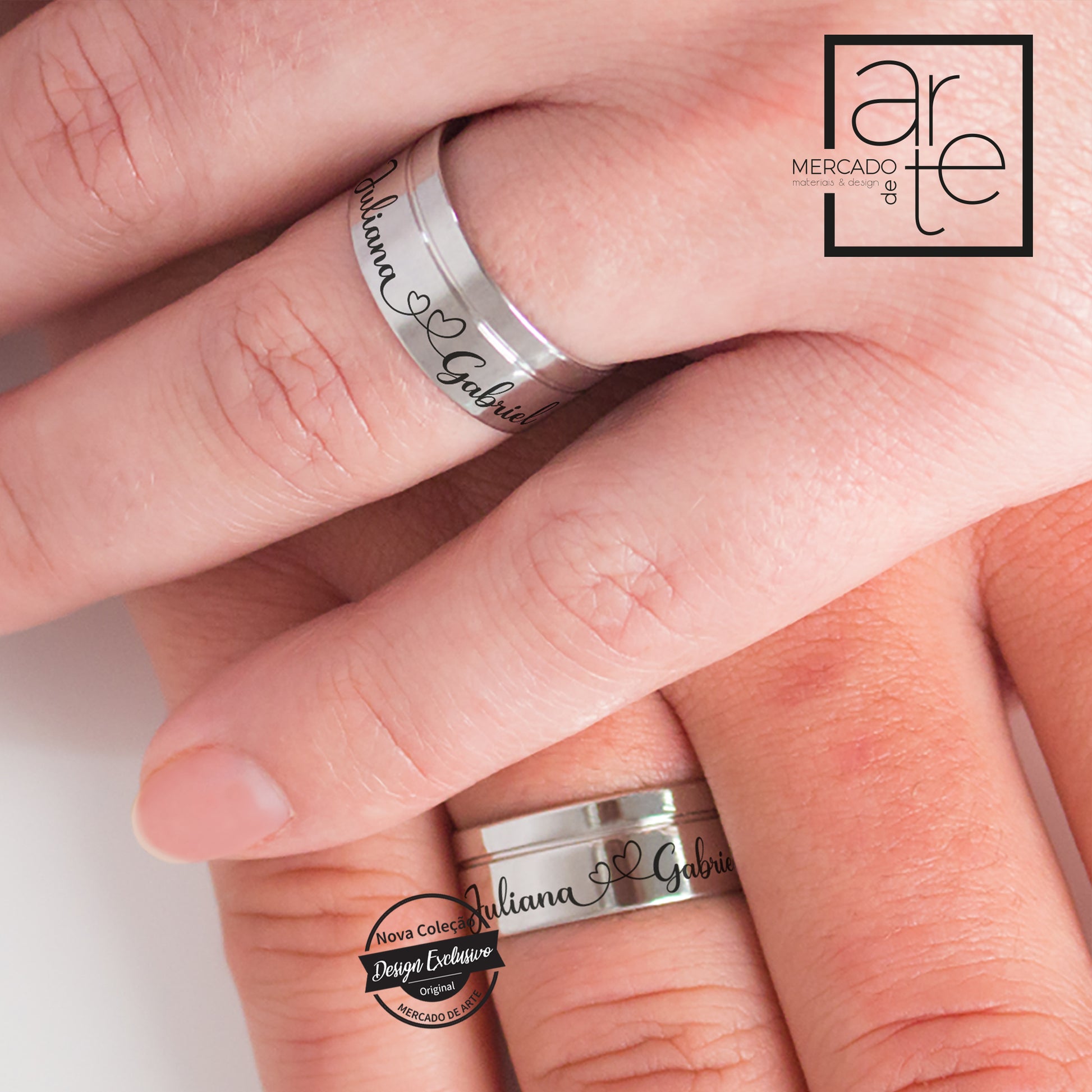Aliança em aço inoxidável 8 mm plana. Personalizável com nomes, datas ou pequena frase. Disponível do 17mm ao 21mm.