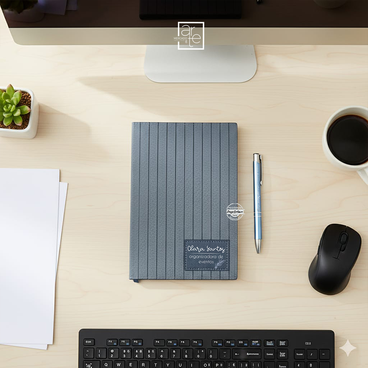 Dá um toque de elegância e personalidade ao teu dia a dia com este bloco de notas e caneta personalizado.
