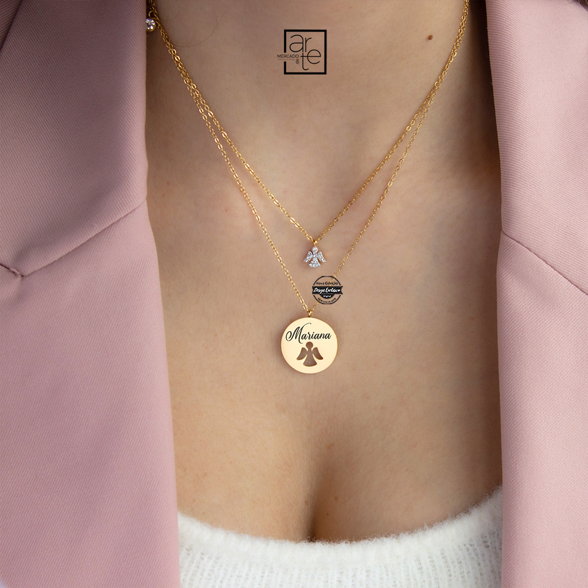 Fio duplo anjos em aço inóx com medalhinha personalizada por si!