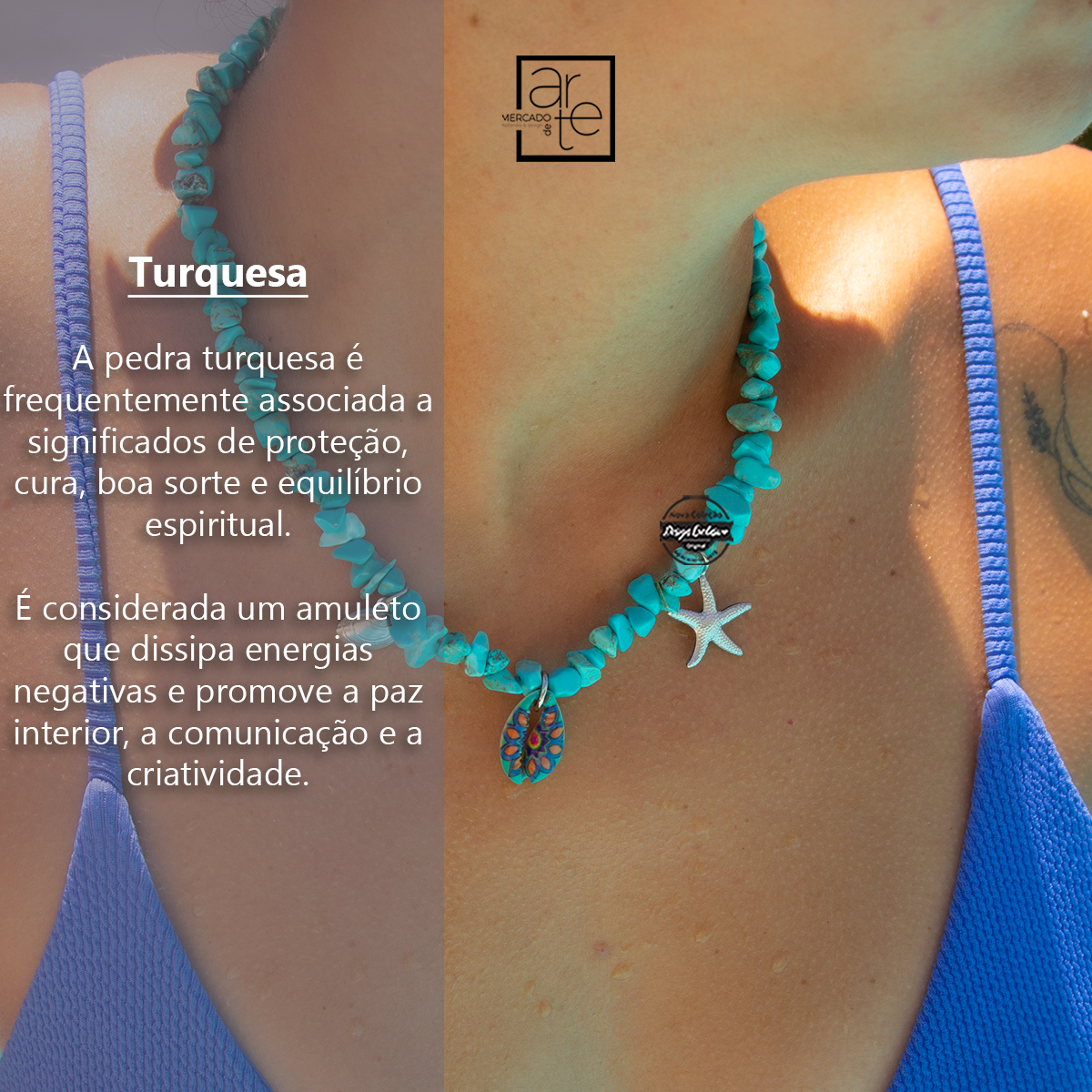 A turquesa, tanto a pedra quanto a cor, possui um significado espiritual profundo, sendo associada à proteção, cura, equilíbrio e comunicação. É considerada um amuleto que traz paz, calma e bem-estar, além de facilitar a expressão criativa e a conexão com a intuição.
