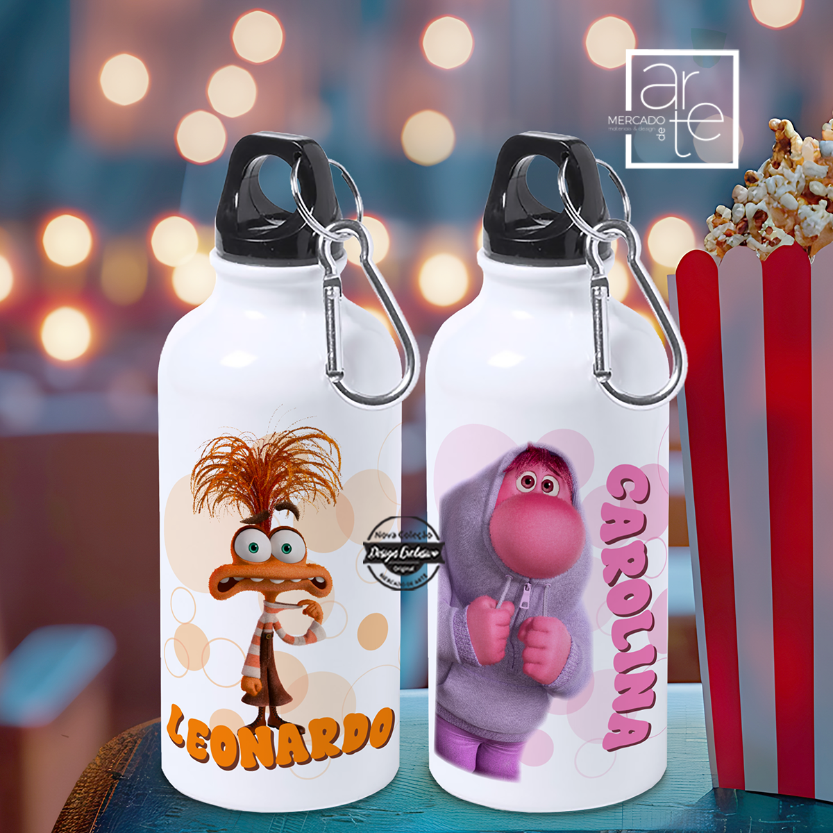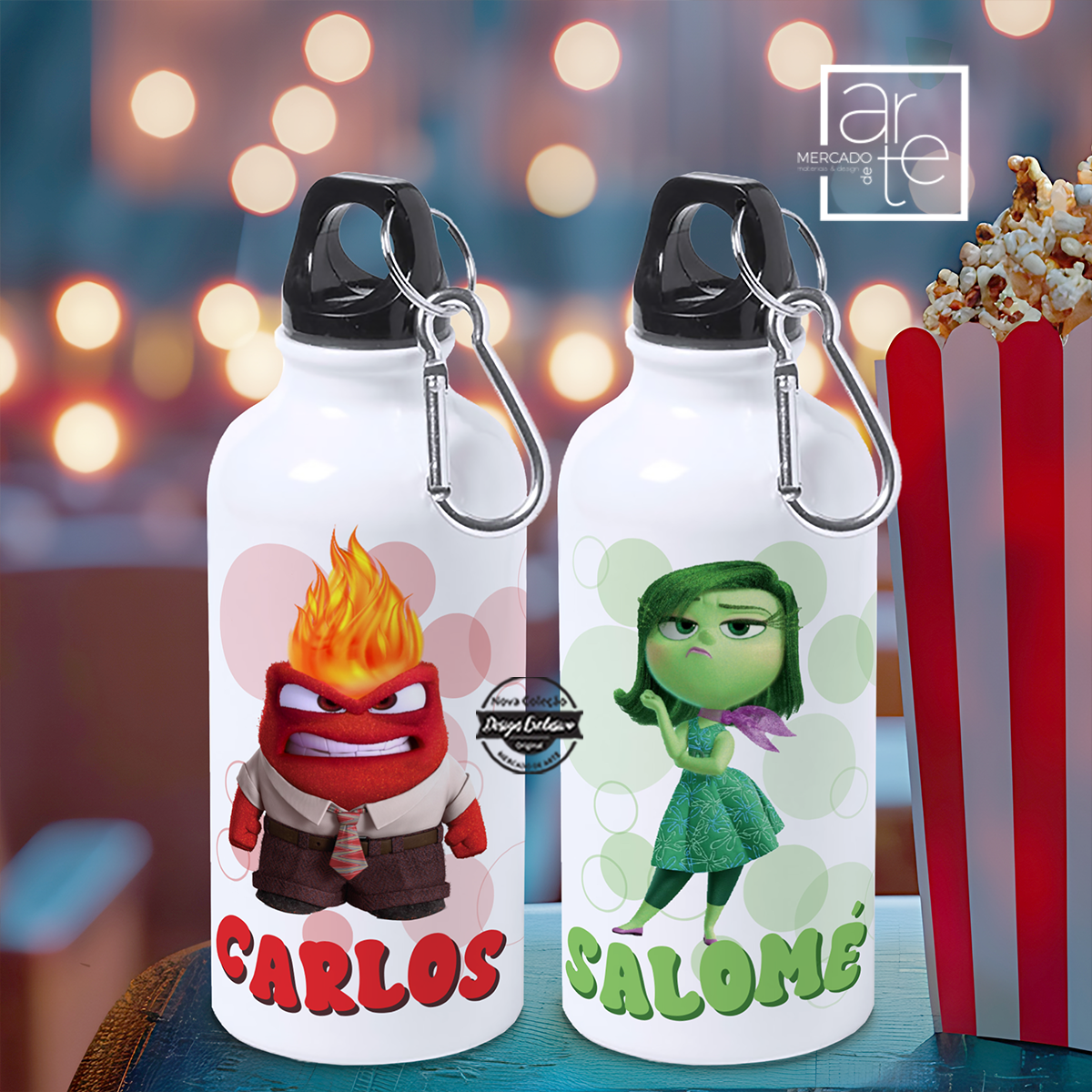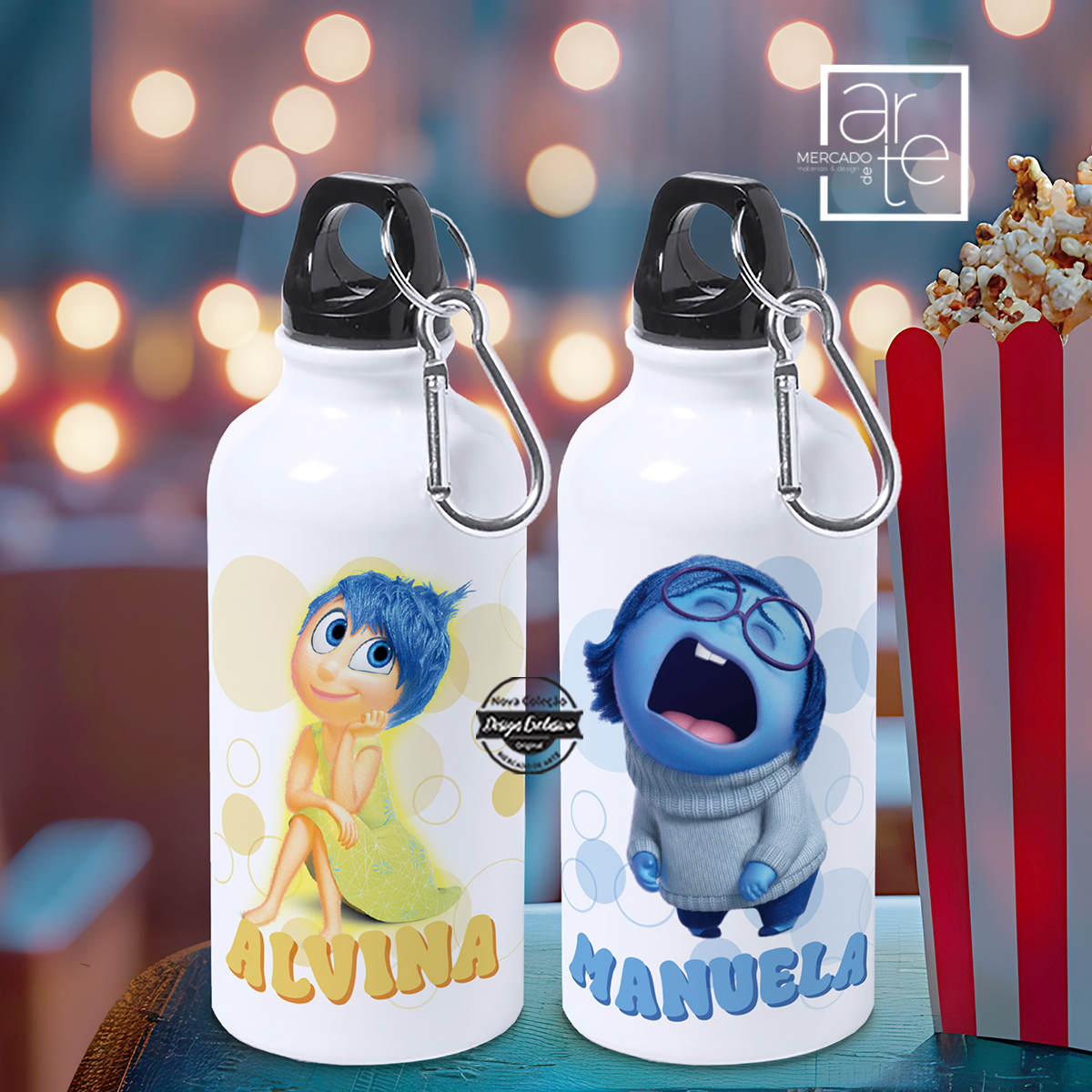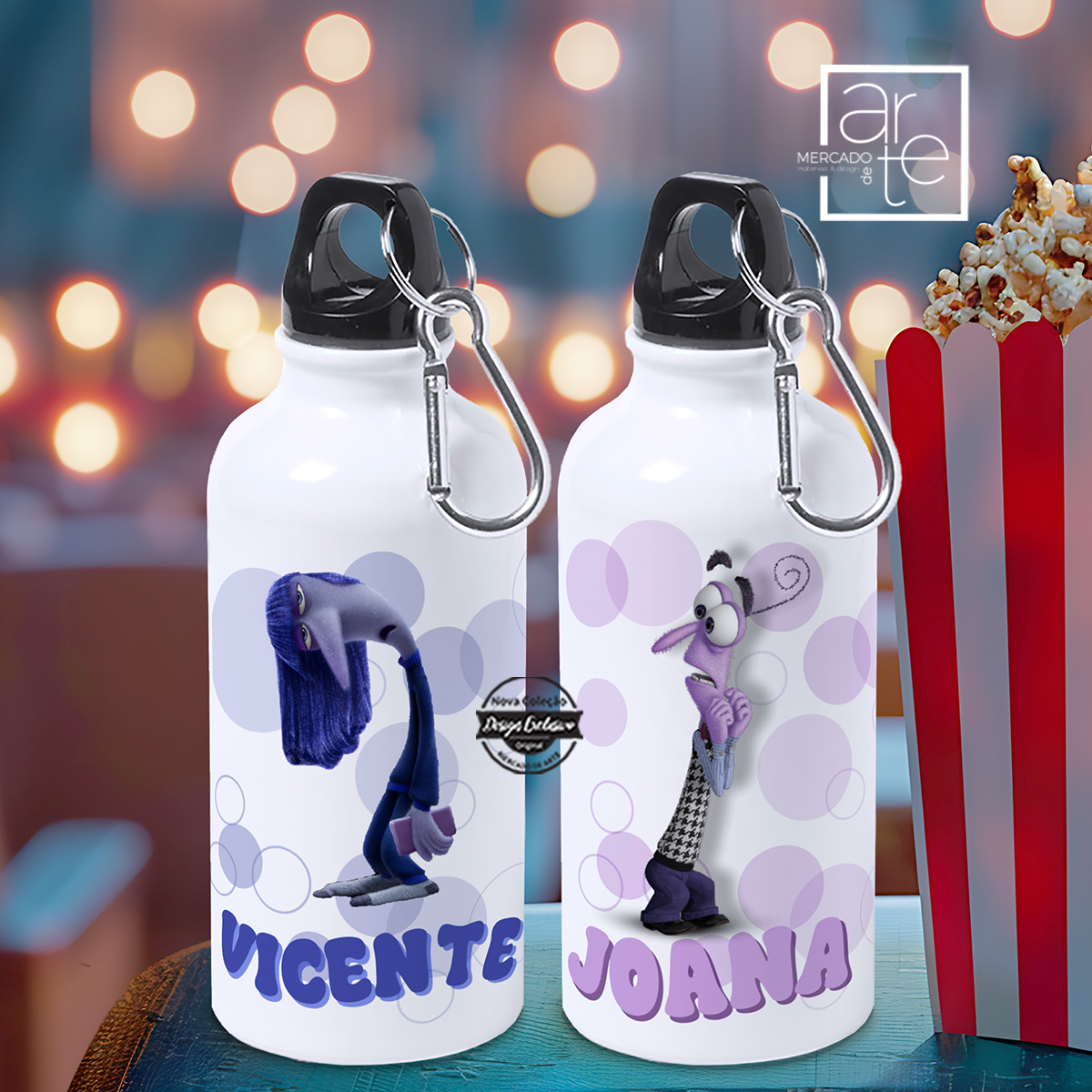 Coleção completa de garrafas de alumínio de Divertidamente, com os personagens e as emoções que fazem parte do nosso dia a dia!