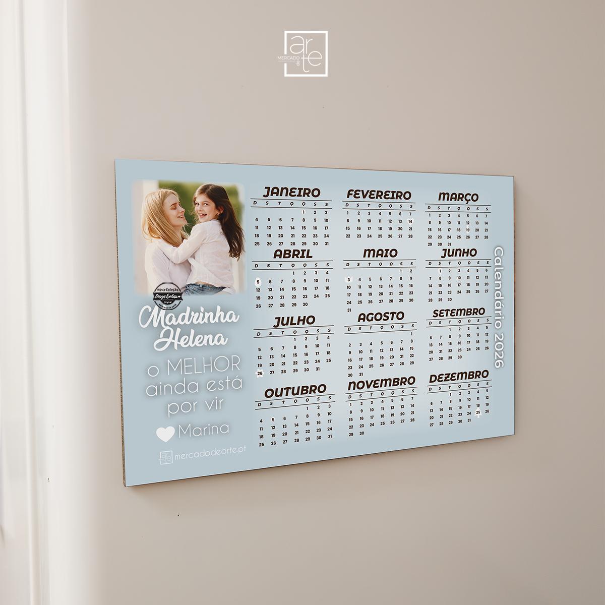 Íman com calendário 2026 "Madrinha, o melhor ainda está por vir", para que todos os dias comecem com um sorriso.