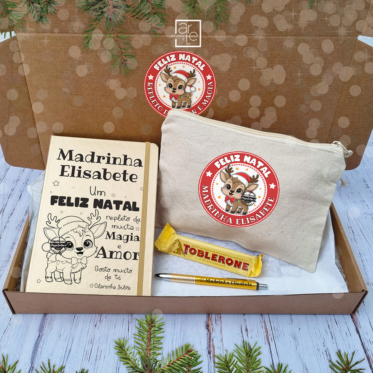 Com o nosso kit de bloco, bolsa e caneta da rena mais fofa deste Natal, vais arrancar sorrisos enquanto desejas um Feliz Natal!
