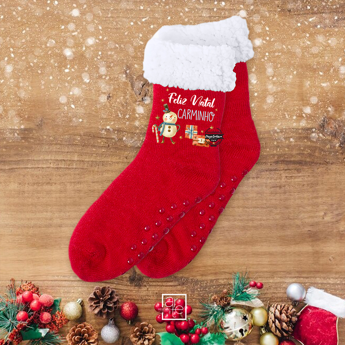 Meias "Boneco de Neve - Feliz Natal", personaliza e oferece sorrisos neste Natal! 🎄