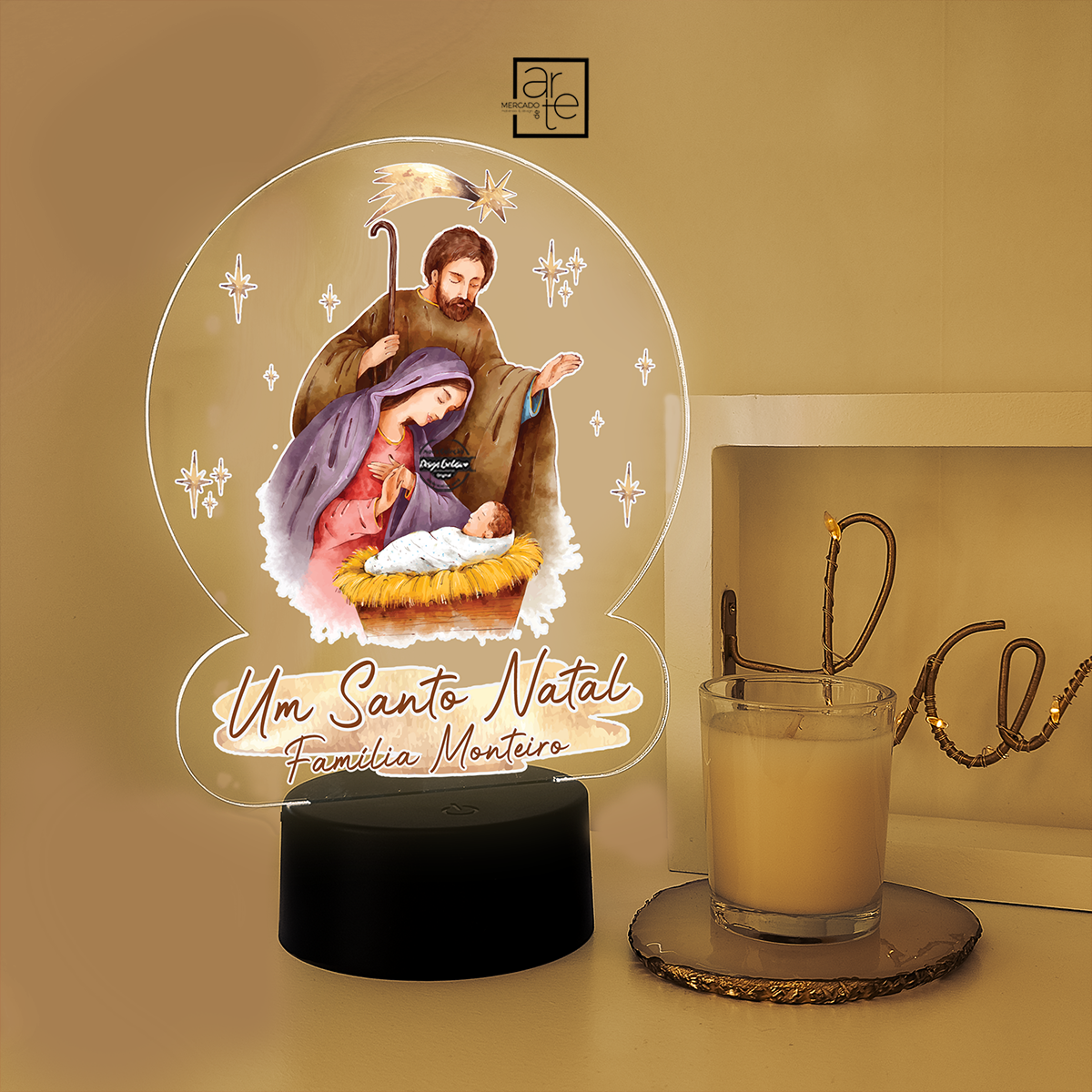 Moldura redonda LED "Presépio - Um santo Natal", o presente perfeito para recordar o verdadeiro sentido desta época mágica.