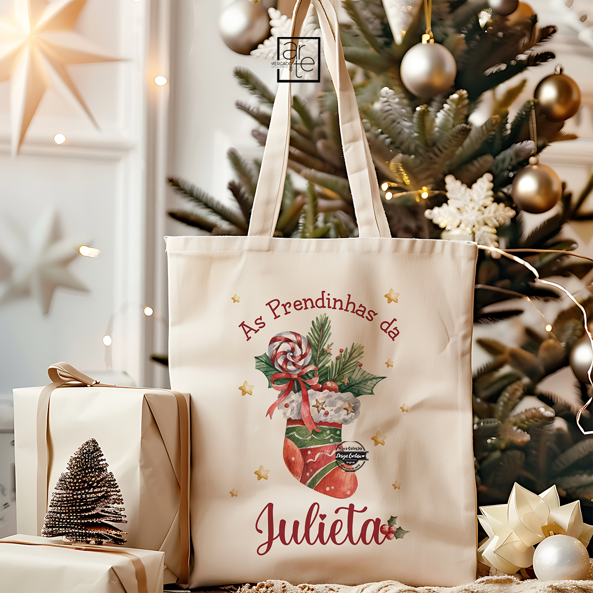 Saco de pano de Natal "As prendinhas da...", personalizado com nome que desejares.