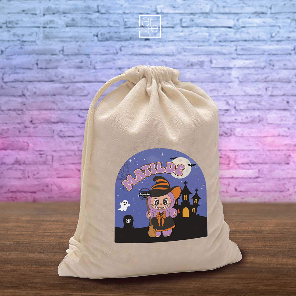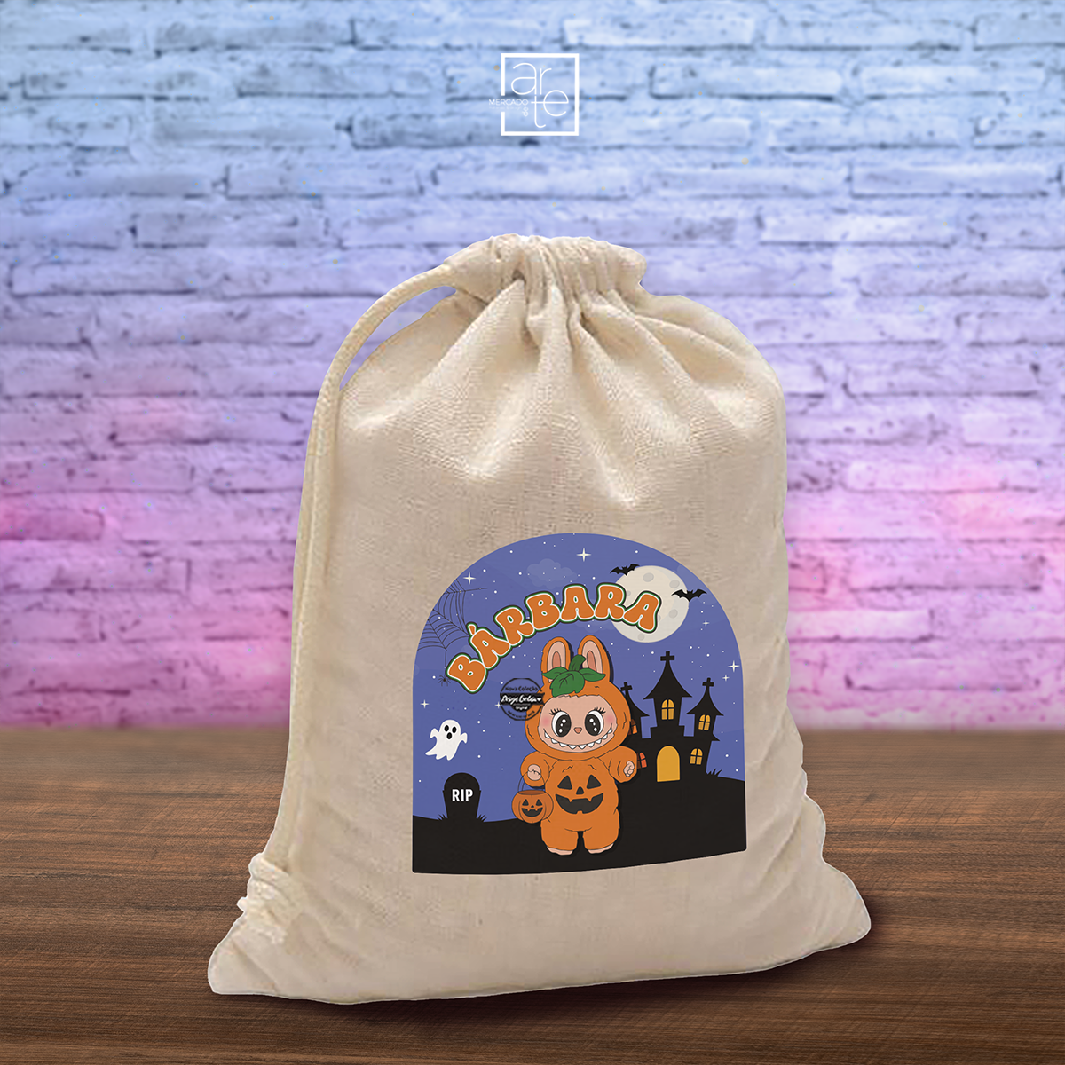 Saquinho de pão por Deus com cordão para fechar "Labubu Halloween" personalizado com o nome que desejar.