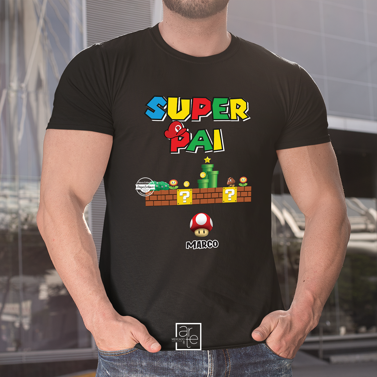 Surpreende o teu pai com uma t-shirt personalizada que combina a nostalgia do Super Mário com o título que ele mais se orgulha de carregar: SUPER PAI!